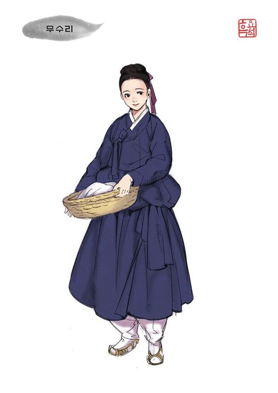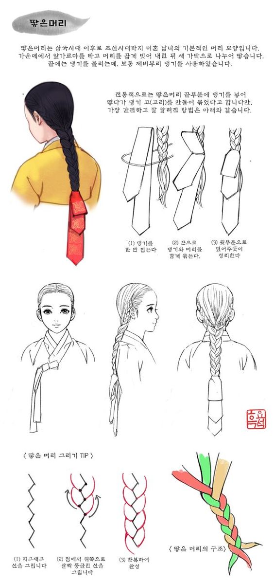 말 그대로 직접 손으로 땋는 것처럼 그림 역시도 그런 식으로 그려주는 것이 좋다. 꼬이는 부분을 중심으로 자연스럽게 둥글린 선을 사용해주면 좋고, 그 구조를 생각하면서 마무리까지 그려 넣어주는 것이 좋다. 내가 컨셉아트를 그려봤자 돈도 안되고 의미도 없기 때문에 어디까지나 취미생활 영역으로 인물 그리는 방법을 정리해두고 있다. 이렇게 땋은 머리로 그린 조선시대 사람들 중에서 흑요석님이 그린 '무수리' 이미지를 가져와봤다.