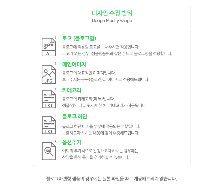홈페이지형 블로그 디자인의 제작비용은 레이아웃이나 링크연동 메뉴 갯수에 따라서 달라질 수 있다는 점을 참고해주시길 바랍니다. 기본적으로 홈페이지형 블로그 스킨 제작과 함께, 프로필 이미지나 모바일 스킨 이미지, 하단 풋터 부분, 이외의 기타 요소들까지 꼼꼼하게 작업합니다.