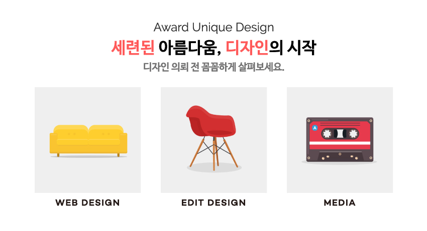 그래서 예쁘기만한 디자인이 아니라, 컨셉에 맞고 고객이 딱 원하는 느낌의 정보를 찾을 수 있도록 간결하고 심플한 디자인을 적용하시는 것을 추천해드리고 있습니다. 직접 디자인을 하면서 한번에 모든 요소나 자료들이 준비되는 것이 아니라 의뢰자에 따라서 그때그때 마다 제공이 되거나 추후 변경되는 부분 등 각각 달라질 수 있습니다. 그래서 제작을 의뢰하실 때에는 어느정도 자료가 준비되었는지에 따라서 제작기한이 달라질 수 있다는 점을 참고하시길 바랍니다.